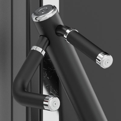 This machine is specially designed to train Triceps and Biceps. The user can set up personal settings and adjust the training position by pulling and pushing the handles, with the elbow as an axis. The angled handles ensure maximum muscle engagement and the angled arm pads provide optimal support and comfort.