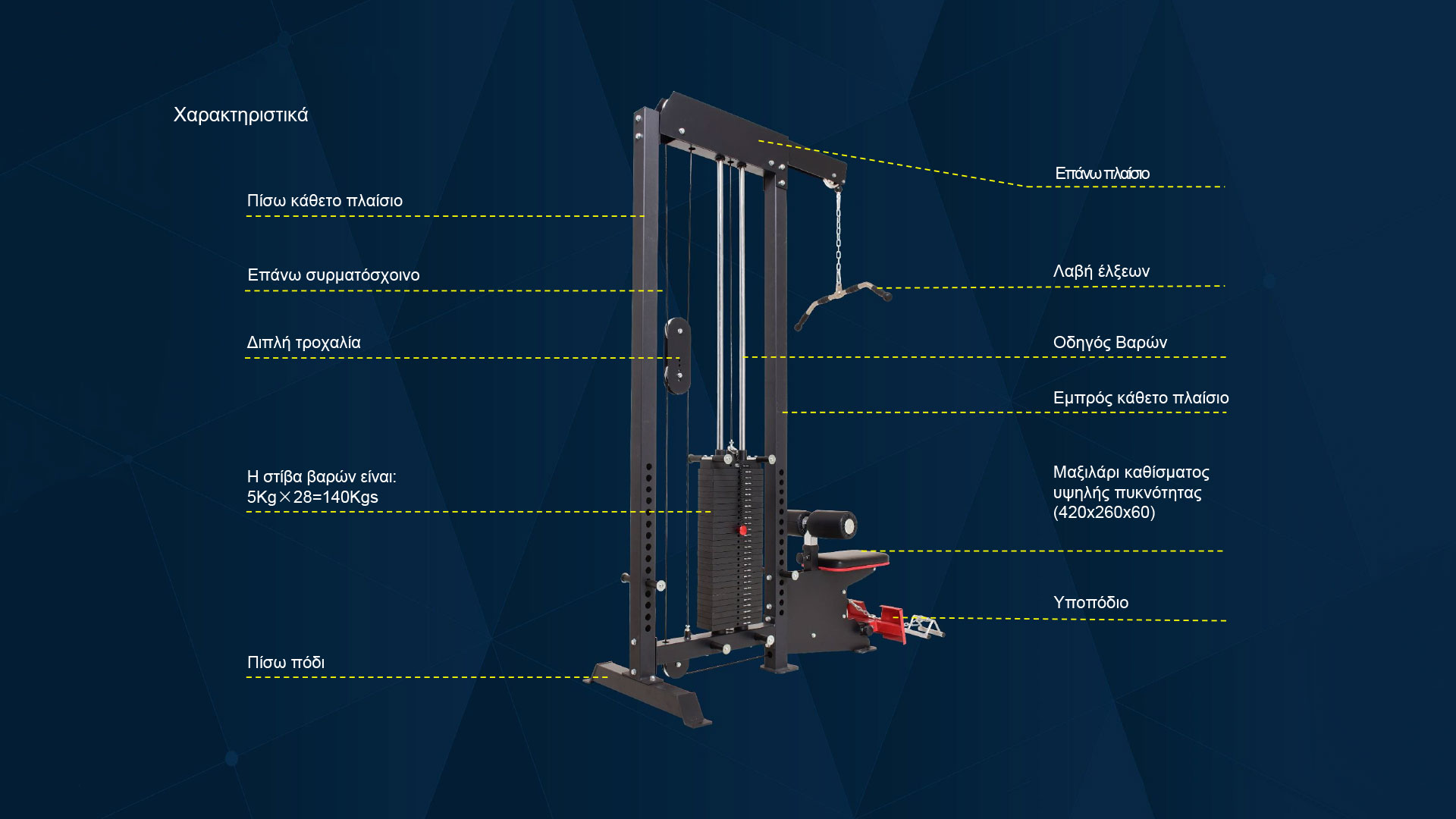 Η στοίβα βάρους 140kg παρέχει άφθονο φορτίο για προοδευτική προπόνηση, ενώ το υψηλής ποιότητας σύστημα τροχαλιών εξασφαλίζει ομαλή, ελεγχόμενη κίνηση σε κάθε επανάληψη. Ιδανικό για οικιακά και επαγγελματικά περιβάλλοντα.