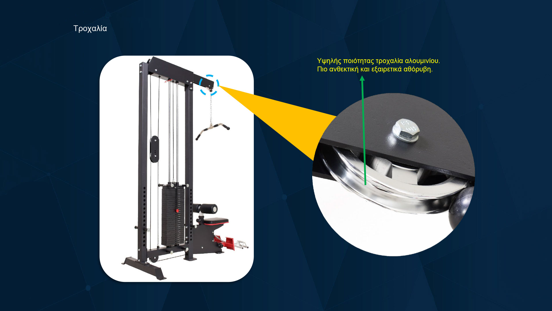 Η Τροχαλία Πλάτης/Κωπηλατική της Pegasus, με τον άνετο και εργονομικό σχεδιασμό της, είναι ιδανική για την οικοδόμηση των πλατιών ραχιαίων μυών, παρέχοντας συνεχή ένταση.