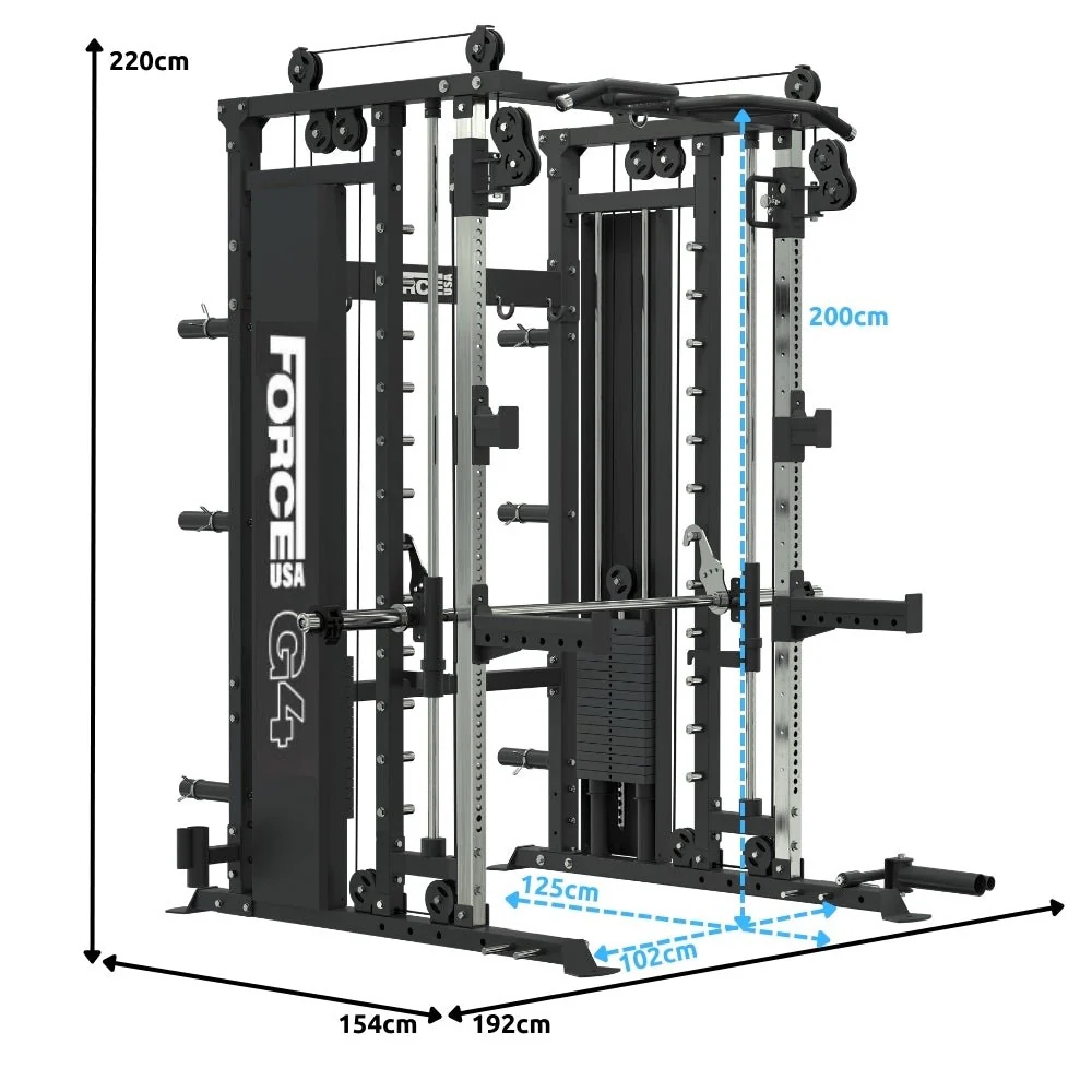Train more efficiently with the G4's core 6 training zones: Functional Trainer, Landmine, Smith Machine, Half Power Rack and Multi Grip Pull Up Bar/ Dip Handles. This dynamic setup lets you smash through full-body routines, target specific muscle groups and switch exercises effortlessly, without cluttering your space.