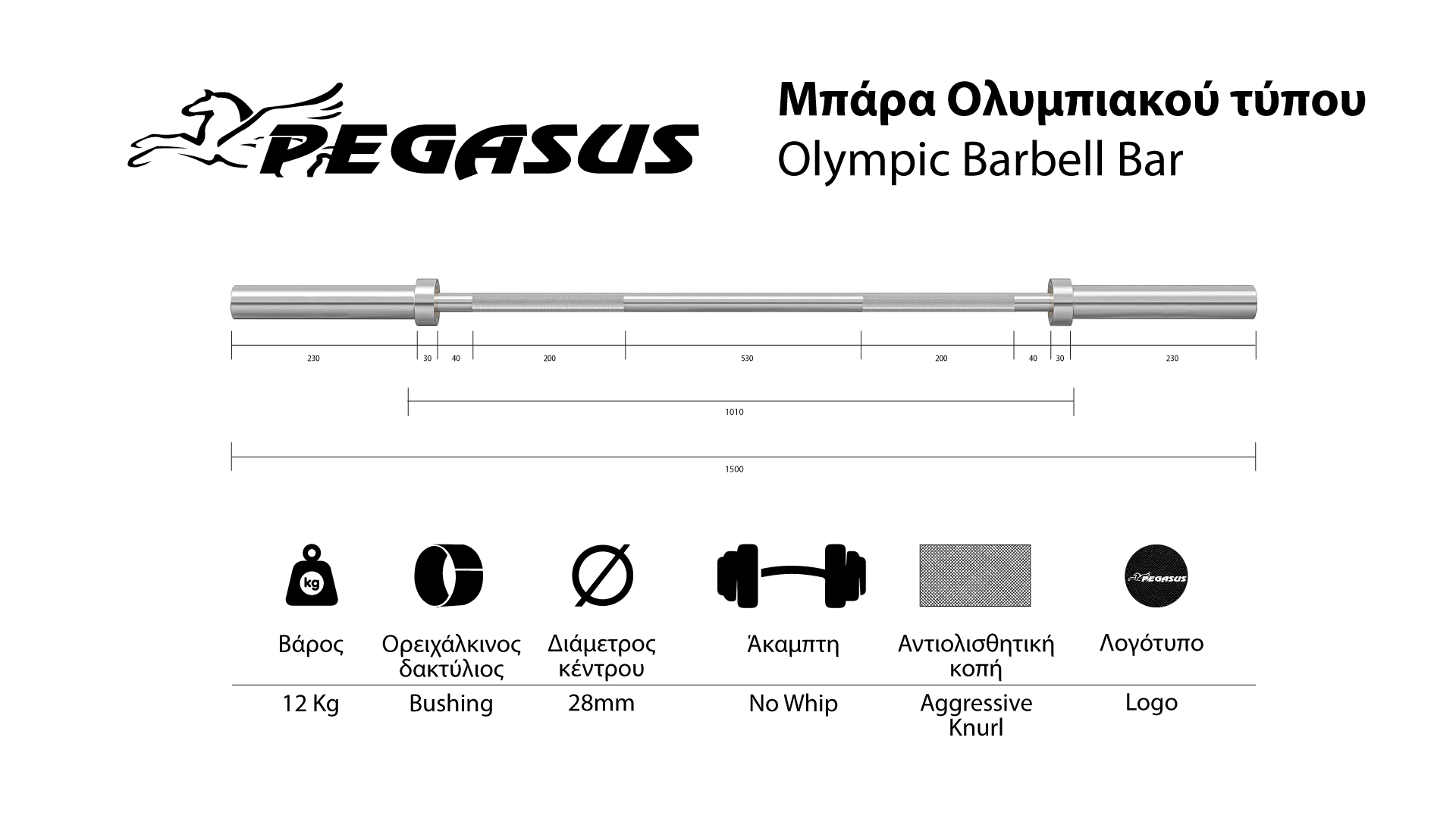 This Olympic Barbell features a 28 mm center diameter and a brass sleeve on each side for optimum performance.